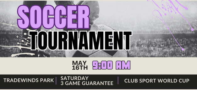 Round up your best team and see how you match up! This tournament is a great day of soccer so don't miss out.
